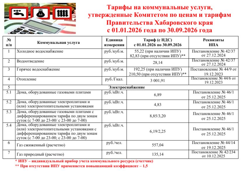 Тарифы на коммунальные услуги в 2026 году,