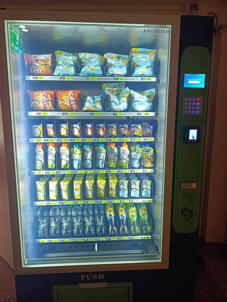Согласно требованиям СанПиН 2.3/2.4.3590-20 - через аппараты для автоматической выдачи допускаются к реализации пищевая продукция промышленного изготовления в потребительской (мелкоштучной) упаковке (соки, нектары, стерилизованное молоко, молочная продукция, питьевая негазированная вода, орехи (кроме арахиса), сухофрукты, а также в потребительской упаковке не более 100 грамм: мучные кондитерские изделия, в том числе обогащенные микронутриентами (витаминизированные) со сниженным содержание глютена, лактозы, сахара).